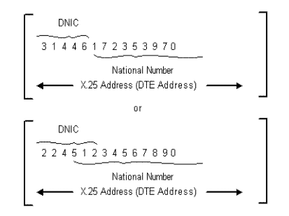 Figure 8-2 shows two sample X.25 addresses. The vendor in the second example uses the last digit of the DNIC as part of the national number.
