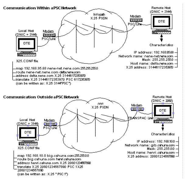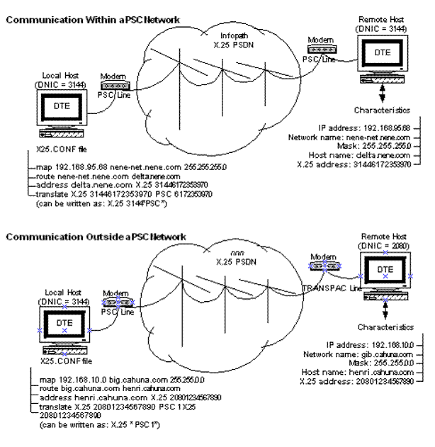 • X.25 address for the remote hosts (a call number and Data Network Identification Code [DNIC])e host(s)